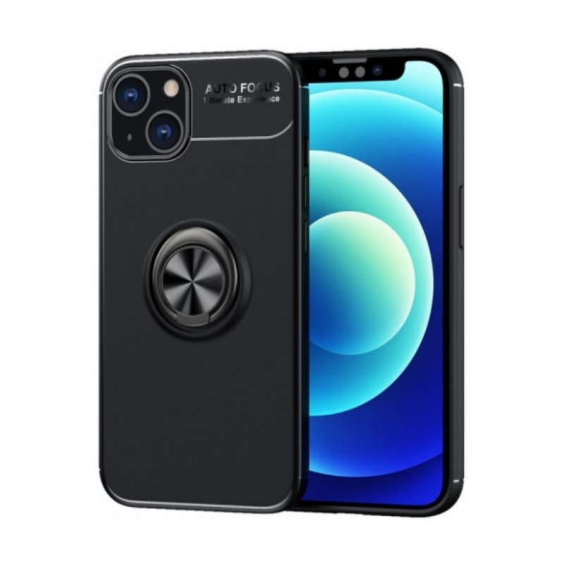 Apple iPhone 14 (6.1) Kılıf Renkli Silikon Yüzüklü Standlı Auto Focus Ravel Kapak - Siyah