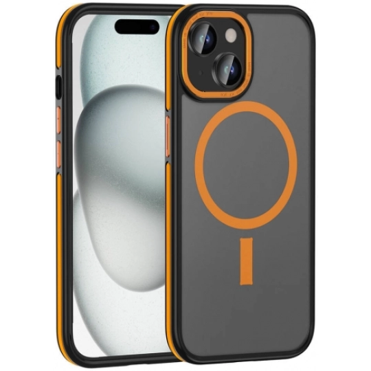 Apple iPhone 14 (6.1) Kılıf Magsafe Şarj Özellikli Mat Görünümlü Ant Kapak - Turuncu