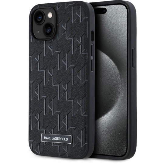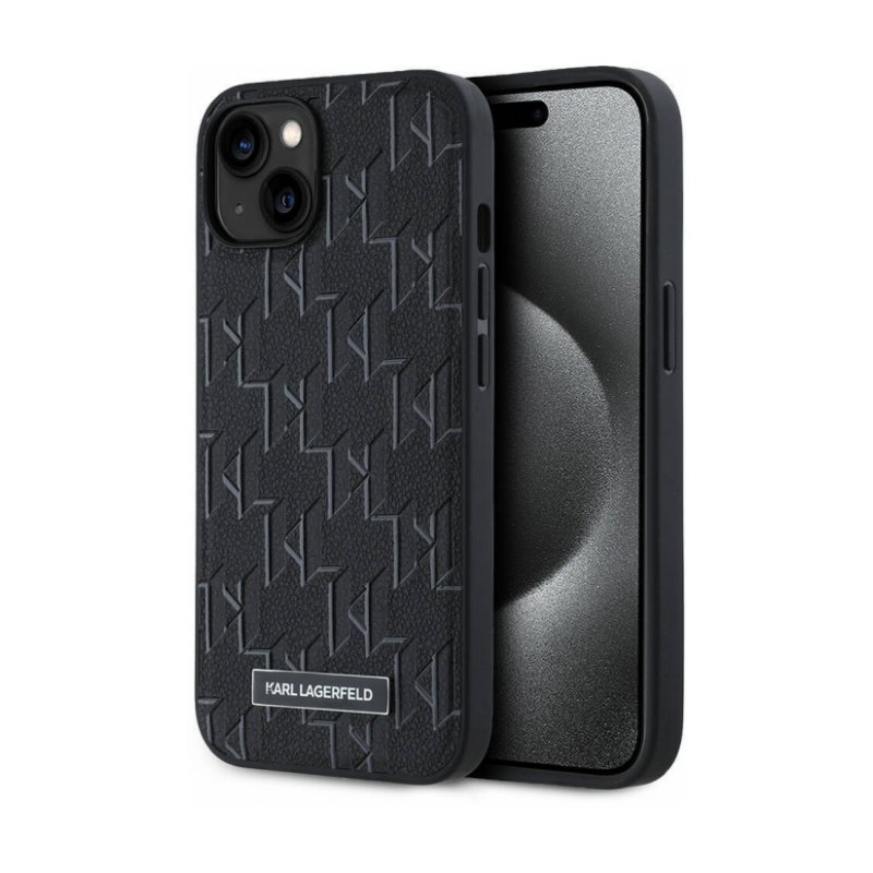 Apple iPhone 14 (6.1) Kılıf Karl Lagerfeld Orjinal Lisanslı Magsafe Şarj Özellikli KL Yazılı Hot Stamp Kapak - Siyah