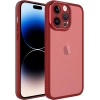 Apple iPhone 14 Pro (6.1) Kılıf Şeffaf Esnek Silikon Kenarları Buzlu Kamera Korumalı Post Kapak - Kırmızı
