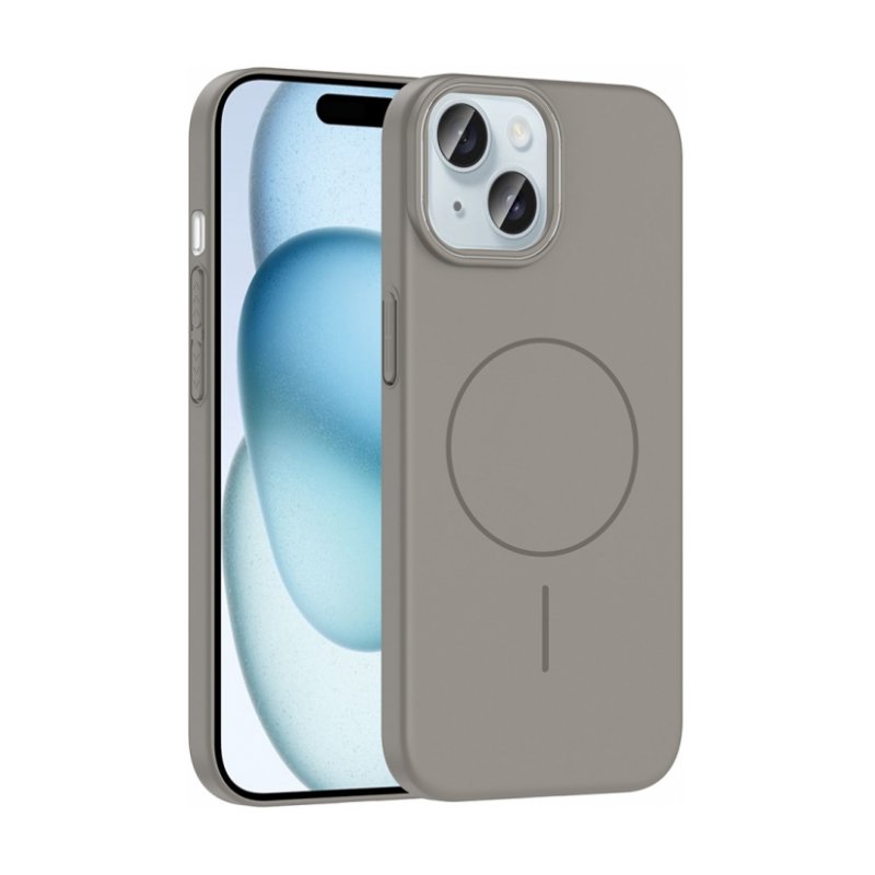 Apple iPhone 15 (6.1) ile Uyumlu Kılıf Magsafe Şarj Özellikli Ruby Silikon Kapak - Gri