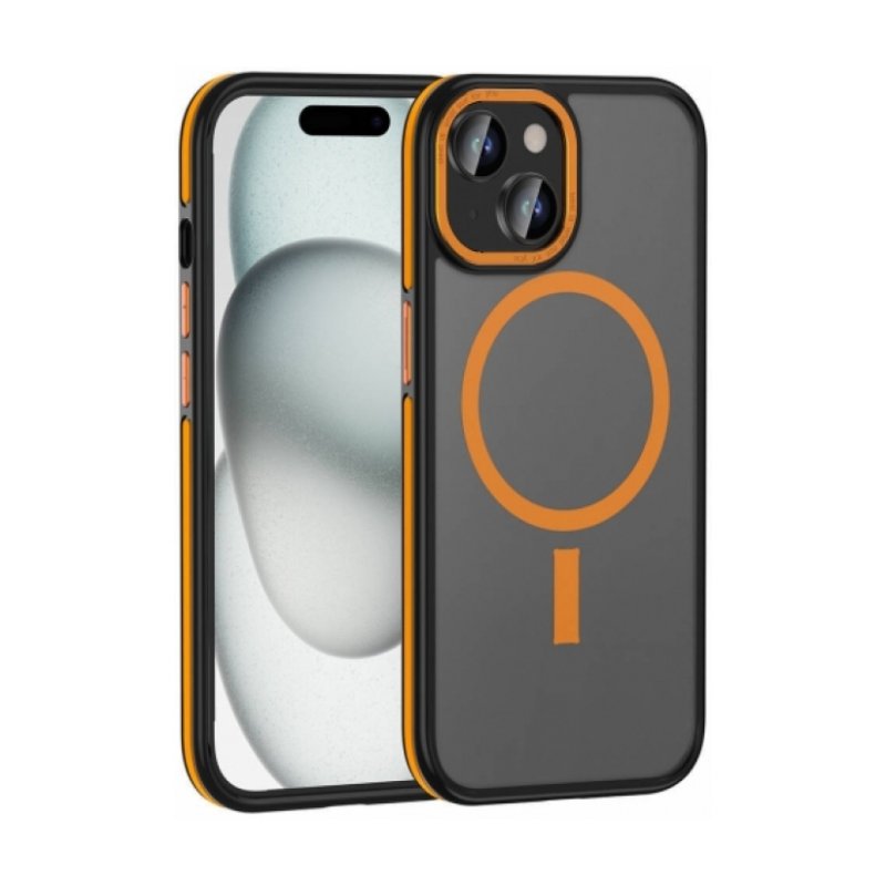 Apple iPhone 15 (6.1) Kılıf Magsafe Şarj Özellikli Mat Görünümlü Ant Kapak - Turuncu