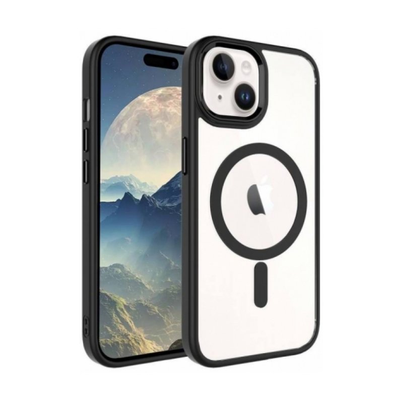 Apple iPhone 15 (6.1) Kılıf Wireless Şarj Özellikli Zore Krom Magsafe Silikon Kapak - Siyah
