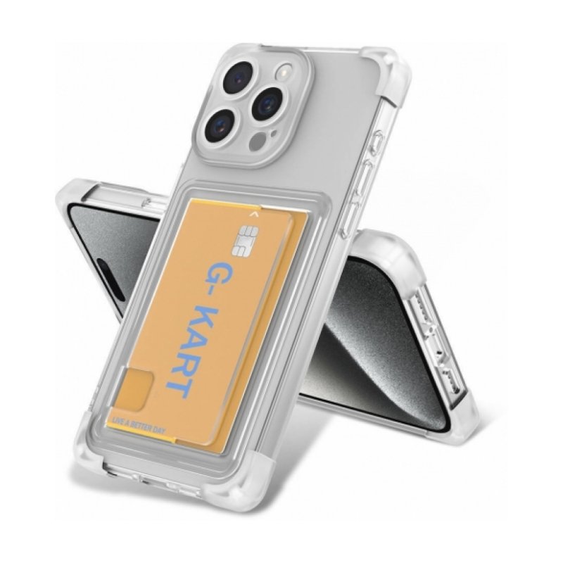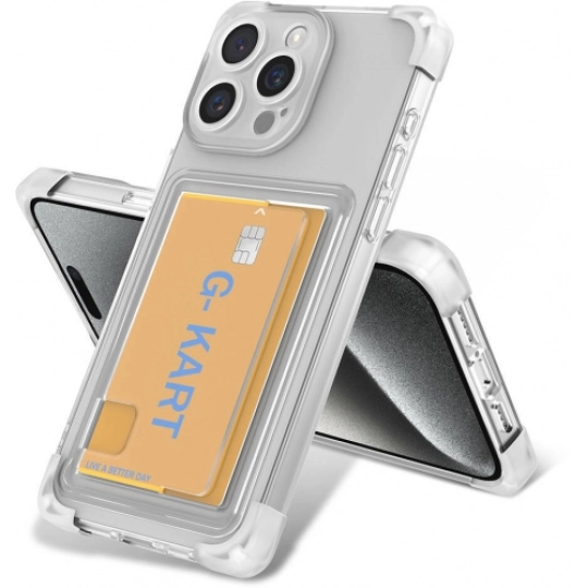 Apple iPhone 15 Pro Max (6.7) Kılıf Airbag Tasarımlı Şeffaf Kartlıklı G-Kart Kapak - Şeffaf