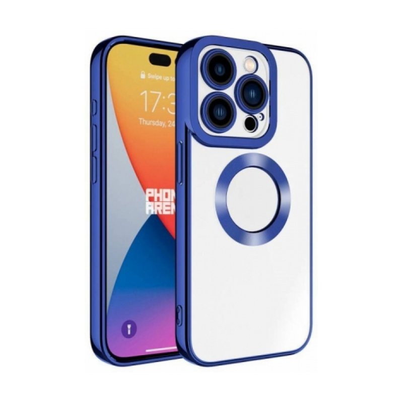 Apple iPhone 15 Pro Max (6.7) Kılıf Kamera Lens Korumalı Şeffaf Renkli Logo Gösteren Parlak Kapak - Midnight