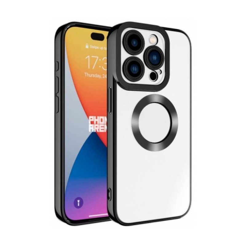 Apple iPhone 15 Pro Max (6.7) Kılıf Kamera Lens Korumalı Şeffaf Renkli Logo Gösteren Parlak Kapak - Siyah