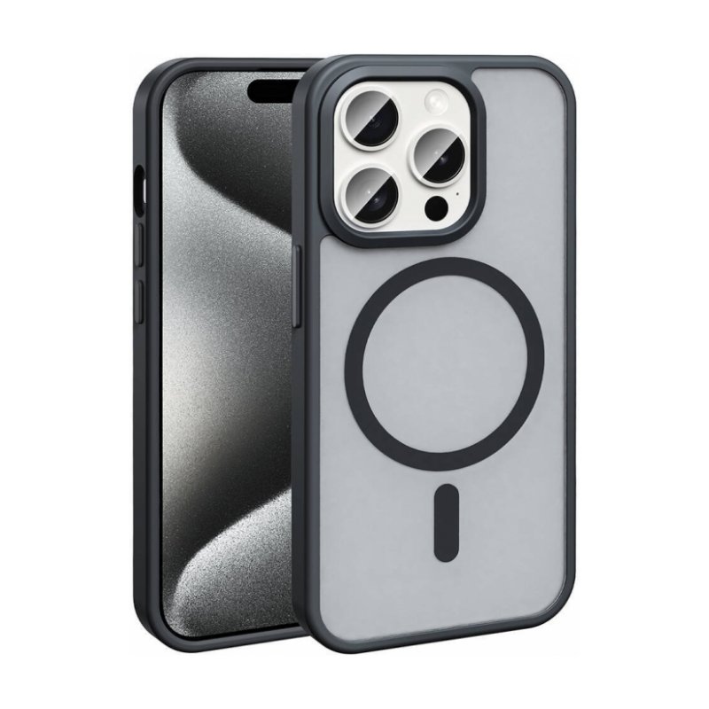 Apple iPhone 15 Pro Max (6.7) Kılıf Magsafe Şarj Özellikli Renkli Mat Arka Yüzey Sio Kapak - Siyah