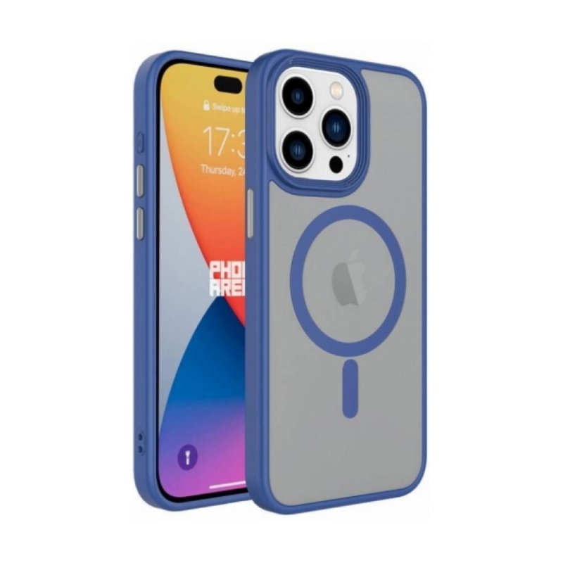 Apple iPhone 15 Pro Max (6.7) Kılıf Mat Arka Yüzey Wireless Şarj Özellikli Flet Magsafe Kapak - Mavi