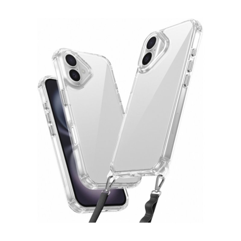 Apple iPhone 16 (6.1) Kılıf Airbagli Takılabilir Askı Aparatlı Esnek Snap Silikon Kapak - Şeffaf