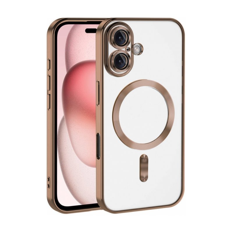 Apple iPhone 16 (6.1) Kılıf Kamera Korumalı Şeffaf Magsafe Wireless Şarj Özellikli Demre Kapak - Bej Gold