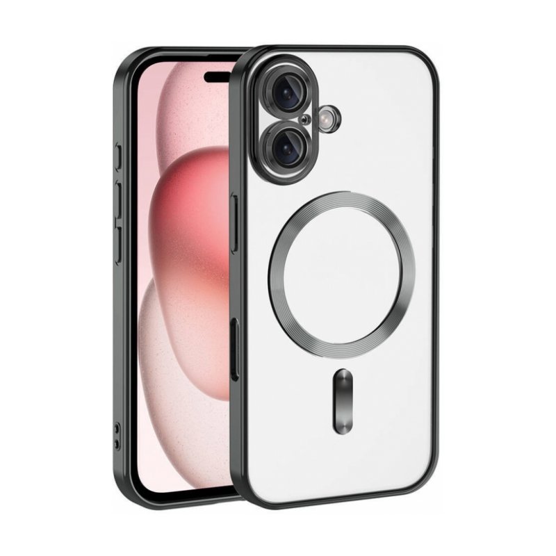 Apple iPhone 16 (6.1) Kılıf Kamera Korumalı Şeffaf Magsafe Wireless Şarj Özellikli Demre Kapak - Siyah