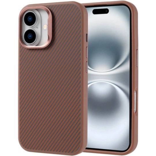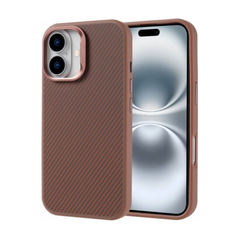 Apple iPhone 16 (6.1) Kılıf Magsafe Şarj Özellikli Karbon Fiber Görünümlü TPU Zore Troy Kapak - Gold