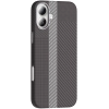 Apple iPhone 16 Plus (6.7) ile Uyumlu Kılıf MagSafe Şarj Özellikli Karbon Fiber Görünümlü Gros Kapak - Gold-Siyah