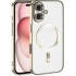 Apple iPhone 16 Plus (6.7) Kılıf Kamera Korumalı Şeffaf Magsafe Wireless Şarj Özellikli Demre Kapak - Gold