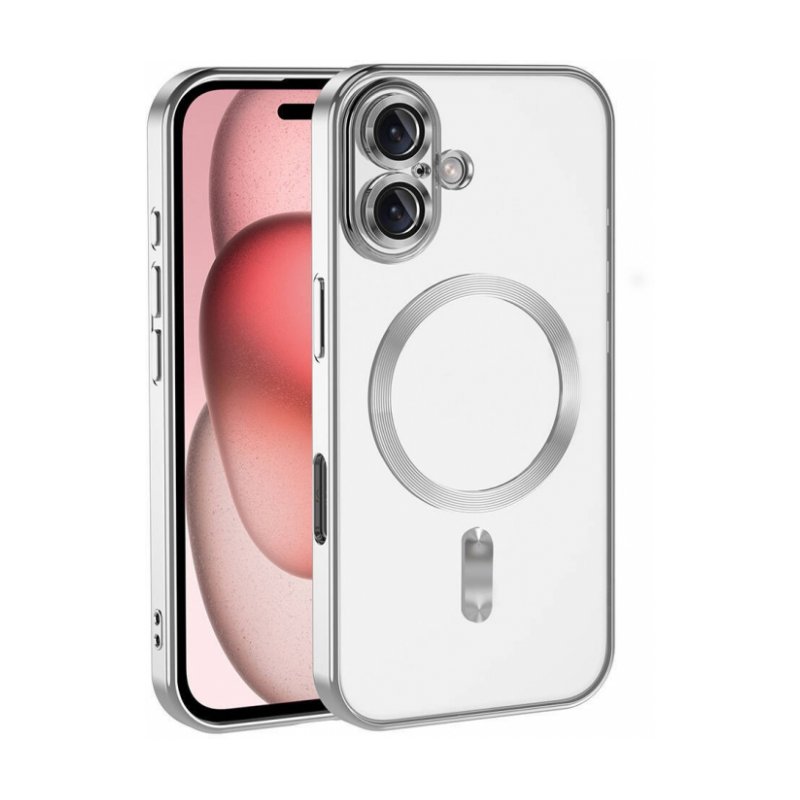 Apple iPhone 16 Plus (6.7) Kılıf Kamera Korumalı Şeffaf Magsafe Wireless Şarj Özellikli Demre Kapak - Gümüş