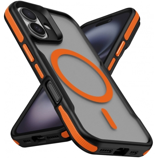 Apple iPhone 16 Plus (6.7) Kılıf Magsafe Şarj Özellikli Renkli Kenar Airbag Şeritli Lamer TPU MagSafe Kapak - Turuncu