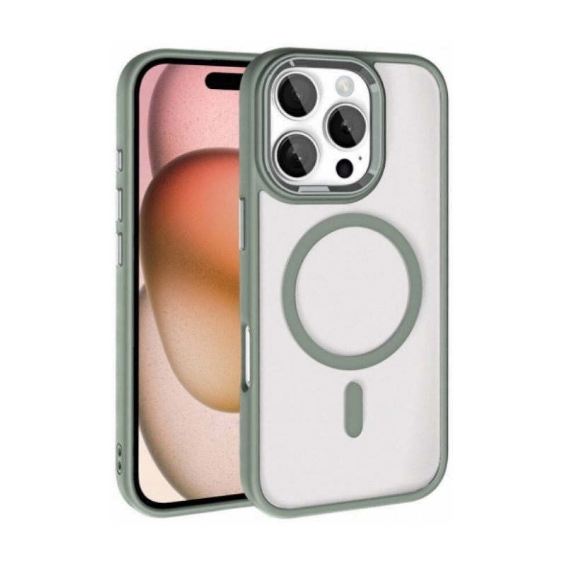 Apple iPhone 16 Pro (6.3) Kılıf Wireless Şarj Özellikli Zore Krom Magsafe Silikon Kapak - Titanyum-Gri