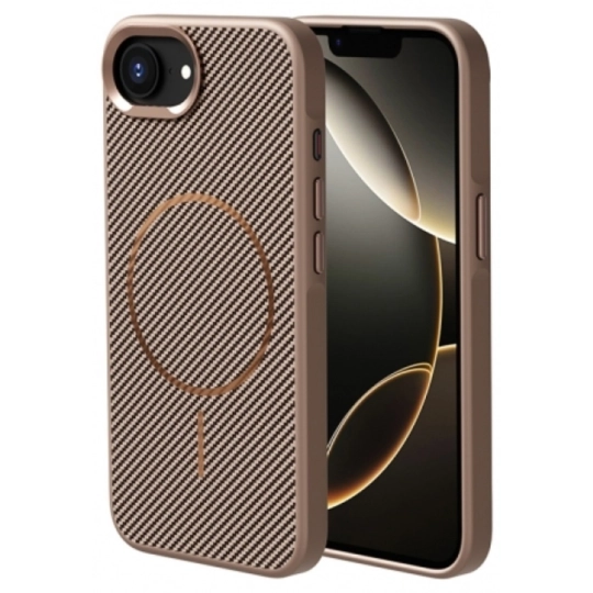 Apple iPhone 16e Kılıf Magsafe Şarj Özellikli Karbon Fiber Görünümlü TPU Zore Troy Kapak - Gold
