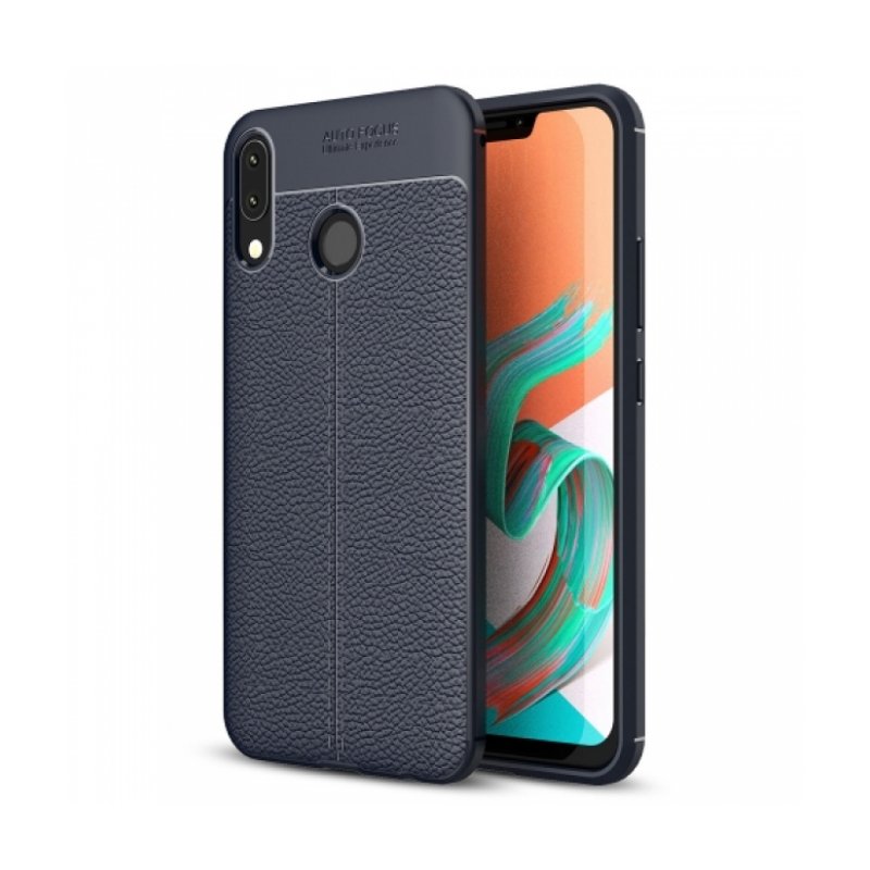 Asus Zenfone 5 (ZE620KL) Kılıf Deri Görünümlü Lüks Parmak İzi Bırakmaz Niss Silikon Kapak - Lacivert