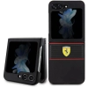 Samsung Galaxy Z Flip 5 Kılıf Ferrari Orjinal Lisanslı PU Deri Metal Logolu Multi Çizgili Kapak - Kırmızı