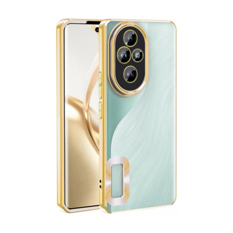 Honor 200 Pro Kılıf Kamera Lens Korumalı Şeffaf Renkli Logo Gösteren Parlak Kapak - Gold