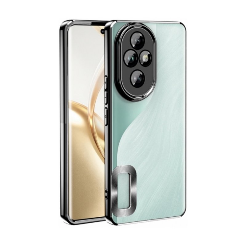 Honor 200 Pro Kılıf Kamera Lens Korumalı Şeffaf Renkli Logo Gösteren Parlak Kapak - Siyah