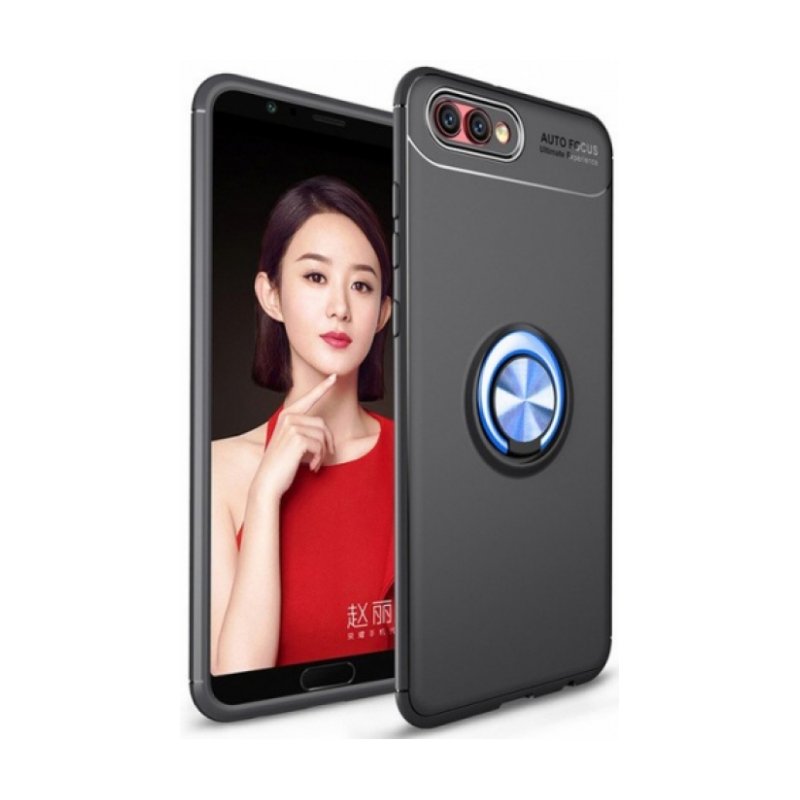 Honor 7s Kılıf Renkli Silikon Yüzüklü Standlı Auto Focus Ravel Kapak - Mavi - Siyah