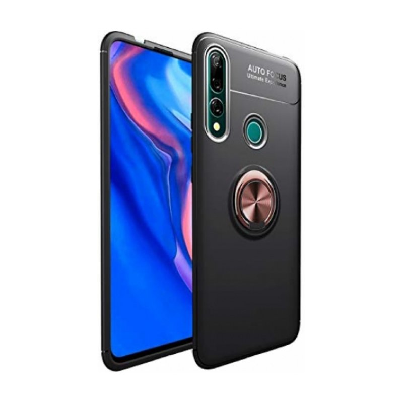 Honor 9x Kılıf Renkli Silikon Yüzüklü Standlı Auto Focus Ravel Kapak - Rose Gold