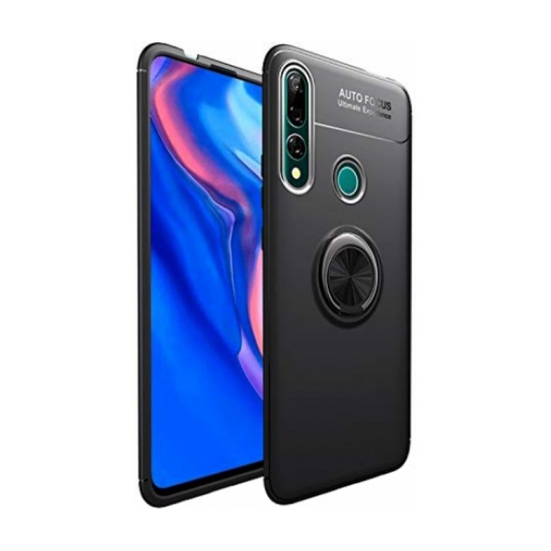 Honor 9x Kılıf Renkli Silikon Yüzüklü Standlı Auto Focus Ravel Kapak - Siyah