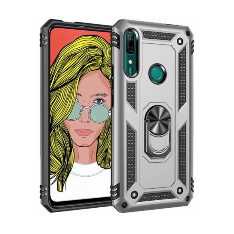 Honor 9x Kılıf Silikon Zırhlı Standlı Yüzüklü Mıknatıslı Tank Kapak - Gümüş