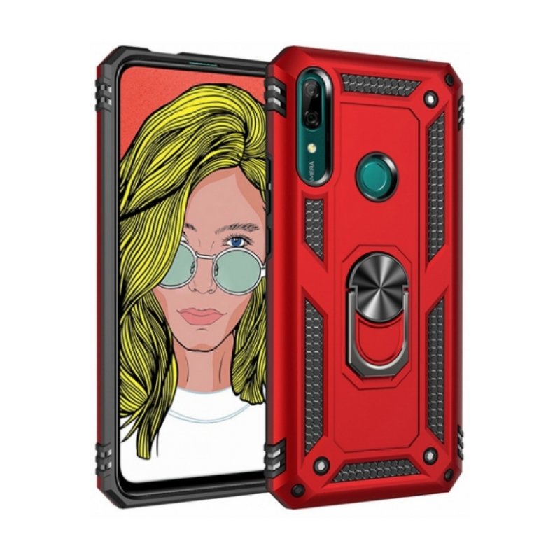 Honor 9x Kılıf Silikon Zırhlı Standlı Yüzüklü Mıknatıslı Tank Kapak - Kırmızı
