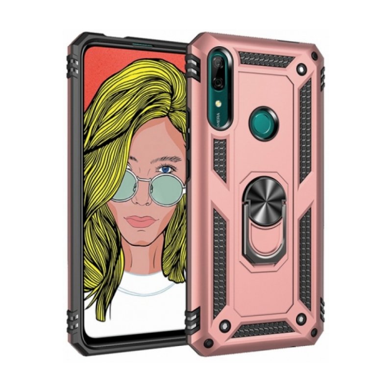 Honor 9x Kılıf Silikon Zırhlı Standlı Yüzüklü Mıknatıslı Tank Kapak - Rose Gold