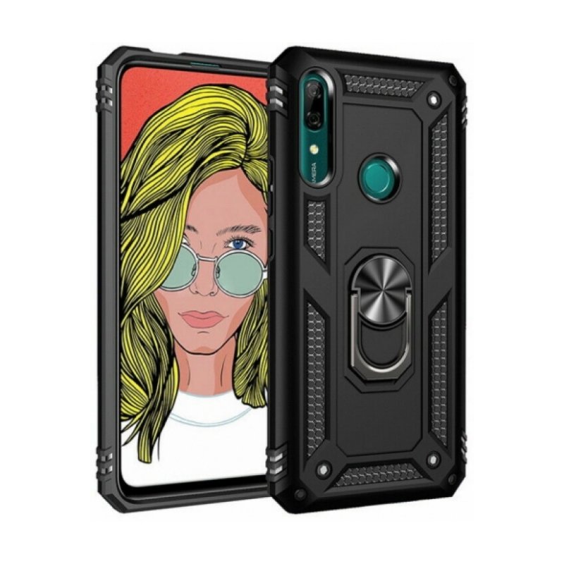 Honor 9x Kılıf Silikon Zırhlı Standlı Yüzüklü Mıknatıslı Tank Kapak - Siyah