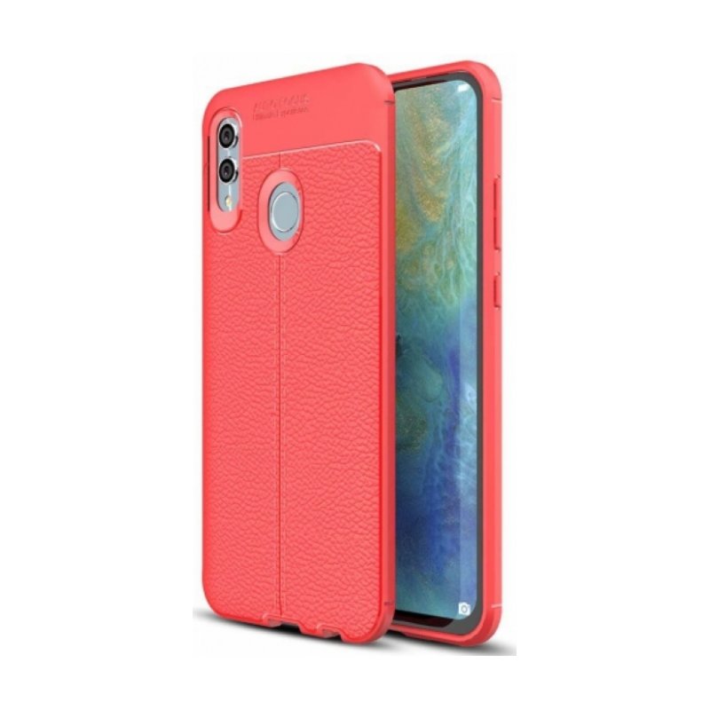 Huawei Honor 10 Lite Kılıf Deri Görünümlü Lüks Parmak İzi Bırakmaz Niss Silikon Kapak - Kırmızı - Siyah