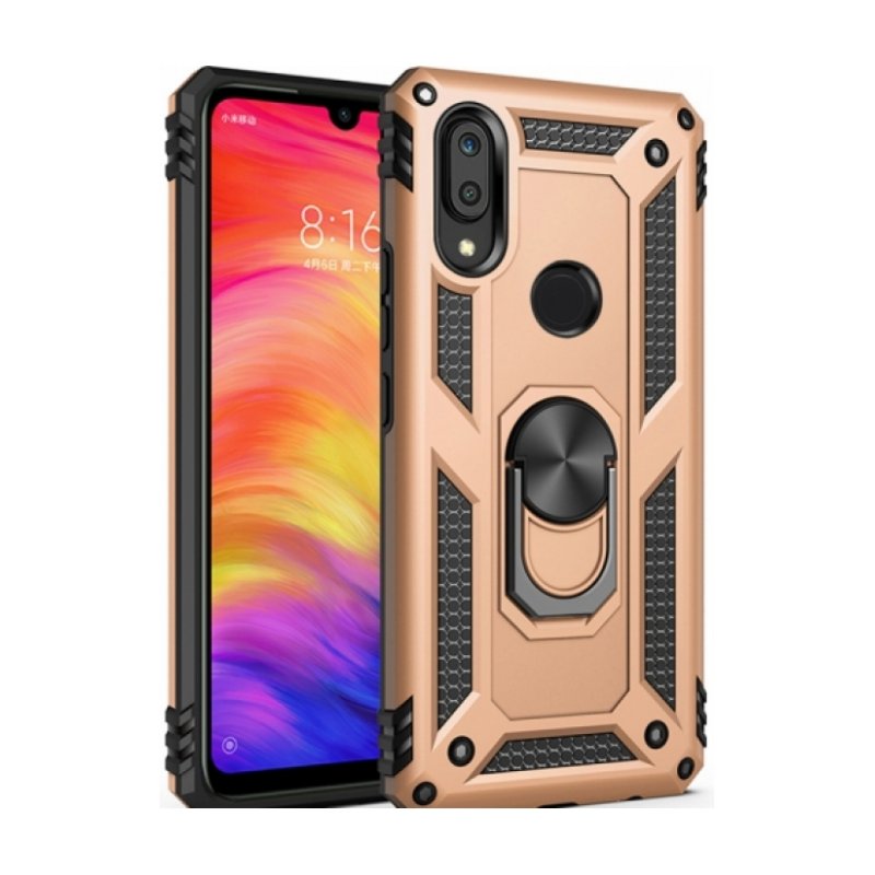 Huawei Honor 10 Lite Kılıf Silikon Zırhlı Standlı Yüzüklü Mıknatıslı Tank Kapak - Gold