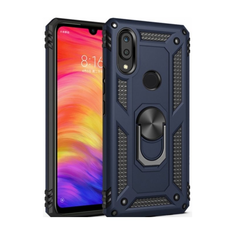 Huawei Honor 10 Lite Kılıf Silikon Zırhlı Standlı Yüzüklü Mıknatıslı Tank Kapak - Lacivert