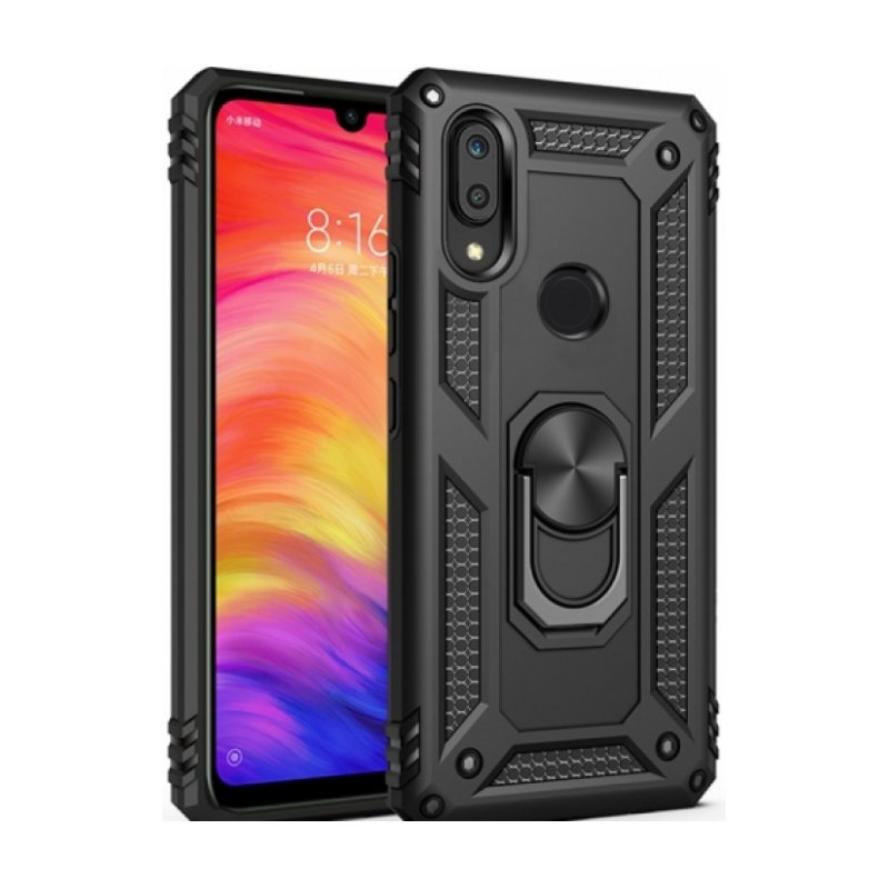Huawei Honor 10 Lite Kılıf Silikon Zırhlı Standlı Yüzüklü Mıknatıslı Tank Kapak - Siyah