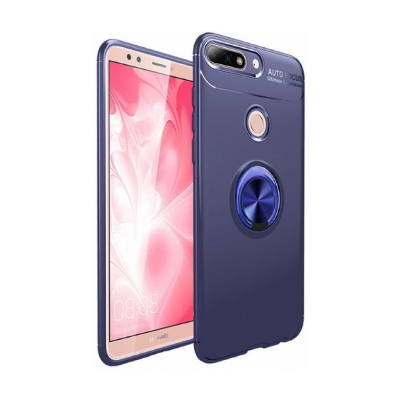 Huawei Honor 7C Kılıf Renkli Silikon Yüzüklü Standlı Auto Focus Ravel Kapak - Mavi