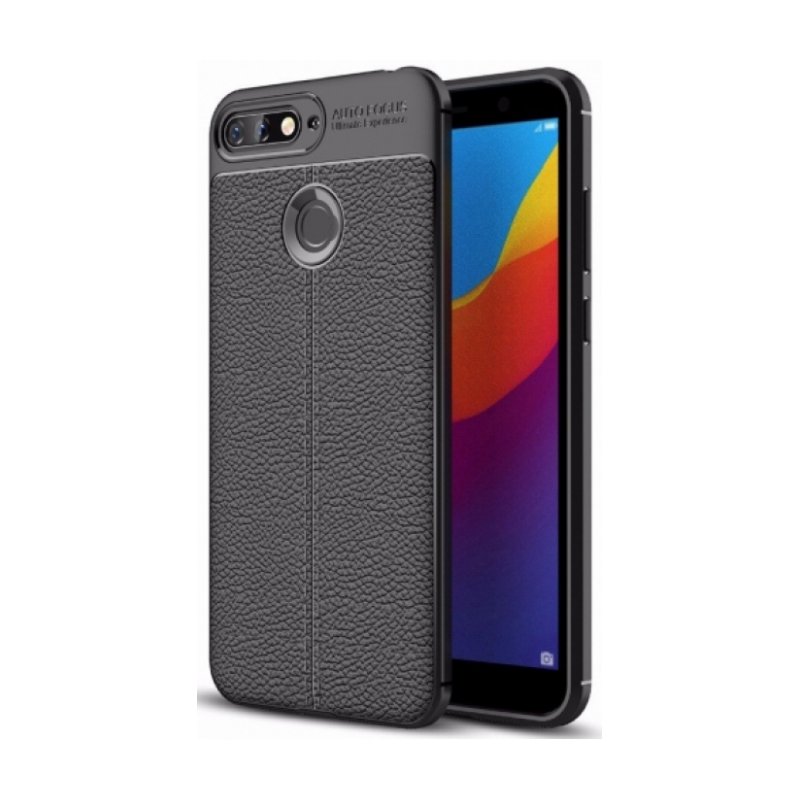 Huawei Honor 7C Kılıf Deri Görünümlü Lüks Parmak İzi Bırakmaz Niss Silikon Kapak - Siyah
