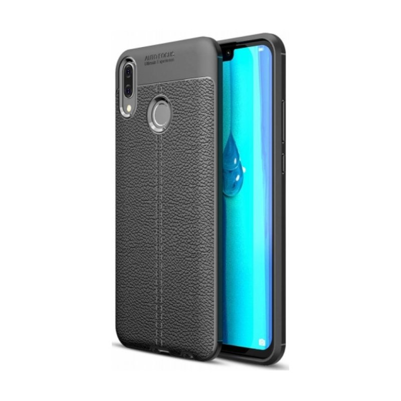 Huawei Honor 8c Kılıf Deri Görünümlü Lüks Parmak İzi Bırakmaz Niss Silikon Kapak - Siyah