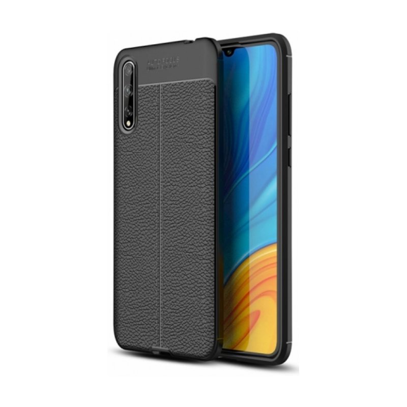 Huawei P Smart S Kılıf Deri Görünümlü Lüks Parmak İzi Bırakmaz Niss Silikon Kapak - Siyah