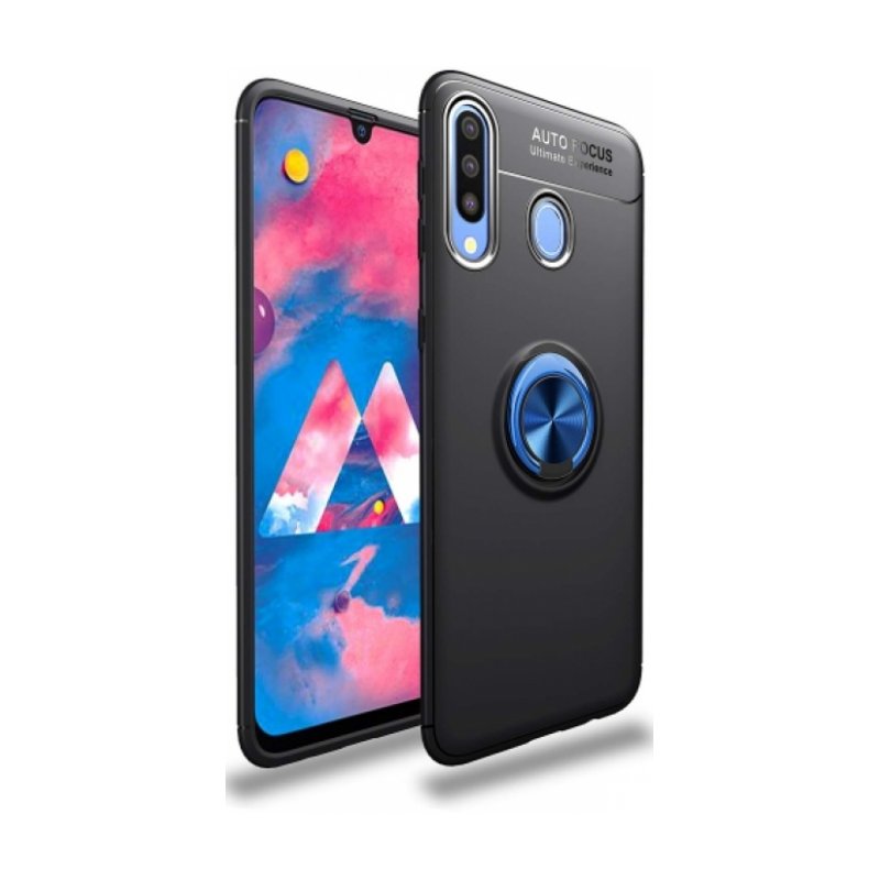 Huawei P30 Lite Kılıf Renkli Silikon Yüzüklü Standlı Auto Focus Ravel Kapak - Mavi - Siyah