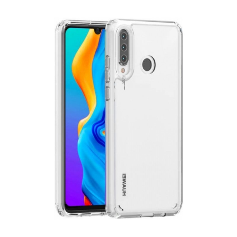 Huawei P30 Lite Kılıf Korumalı Kenarları Silikon Arkası Sert Coss Kapak - Şeffaf