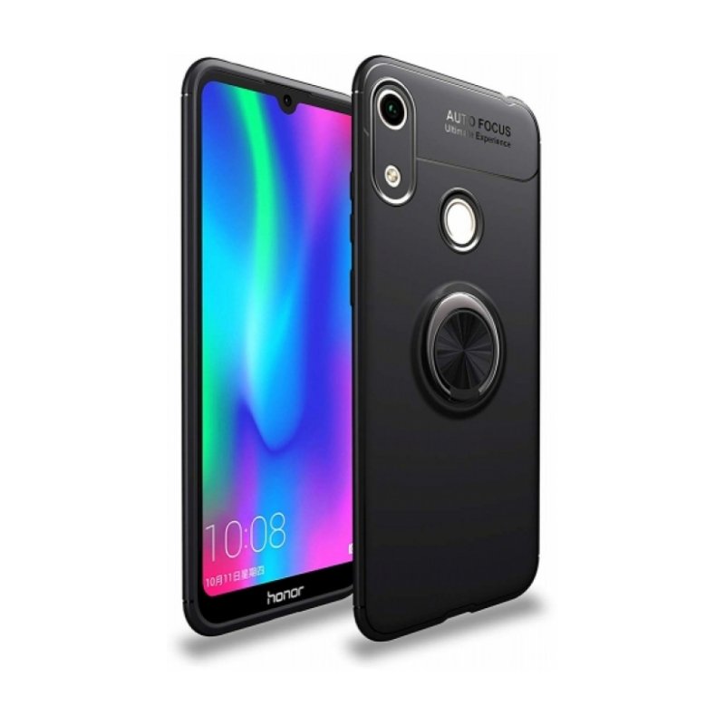 Huawei Y6 2019 Kılıf Renkli Silikon Yüzüklü Standlı Auto Focus Ravel Kapak - Siyah