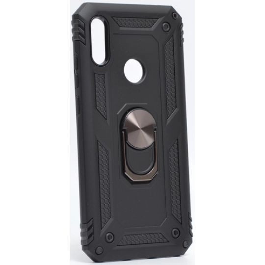 Huawei Y6 2019 Kılıf Silikon Zırhlı Standlı Yüzüklü Mıknatıslı Tank Kapak - Siyah