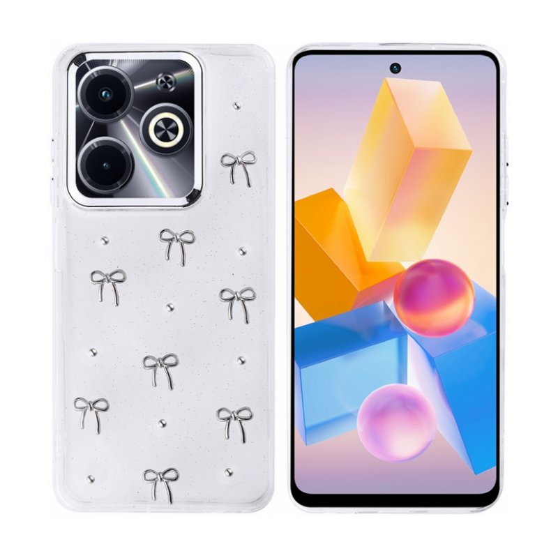 Fiyonk, kiraz, yıldız ve lale detaylarıyla tasarlanan bu özel kapak, simli şeffaf yapısıyla telefonunuza zarif bir hava katarken onu güvenle kullanmanızı sağlar. Göz alıcı tasarımıyla tarzınızı yansıtırken cihazınıza kusursuz bir uyum sunar.