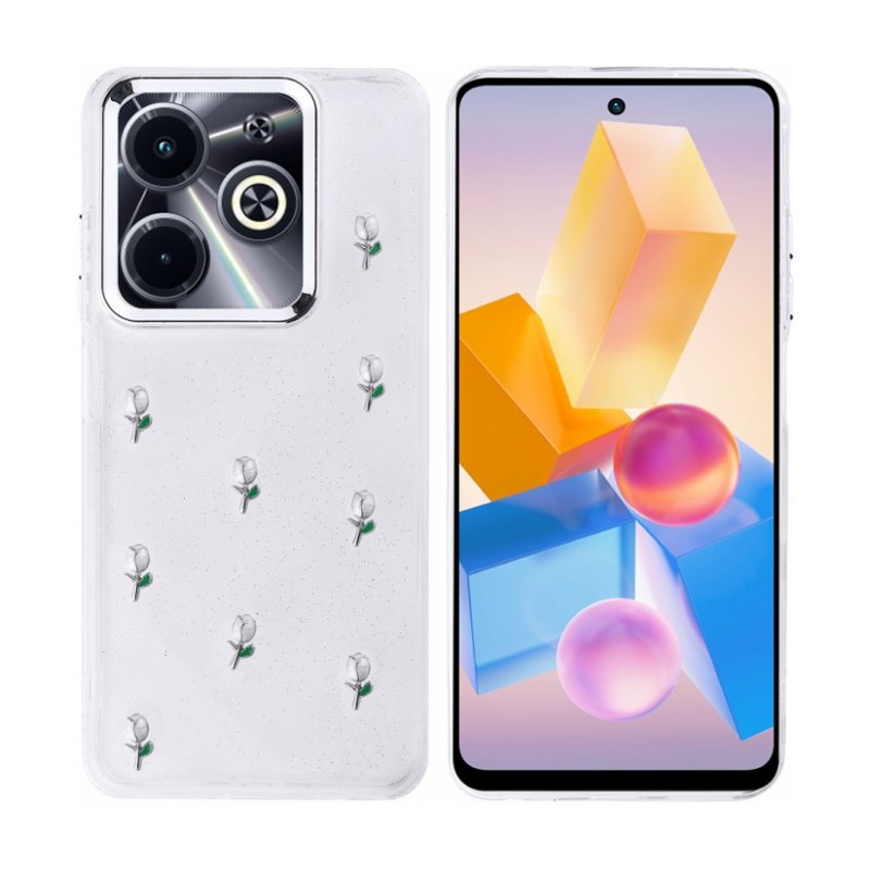 Fiyonk, kiraz, yıldız ve lale detaylarıyla tasarlanan bu özel kapak, simli şeffaf yapısıyla telefonunuza zarif bir hava katarken onu güvenle kullanmanızı sağlar. Göz alıcı tasarımıyla tarzınızı yansıtırken cihazınıza kusursuz bir uyum sunar.