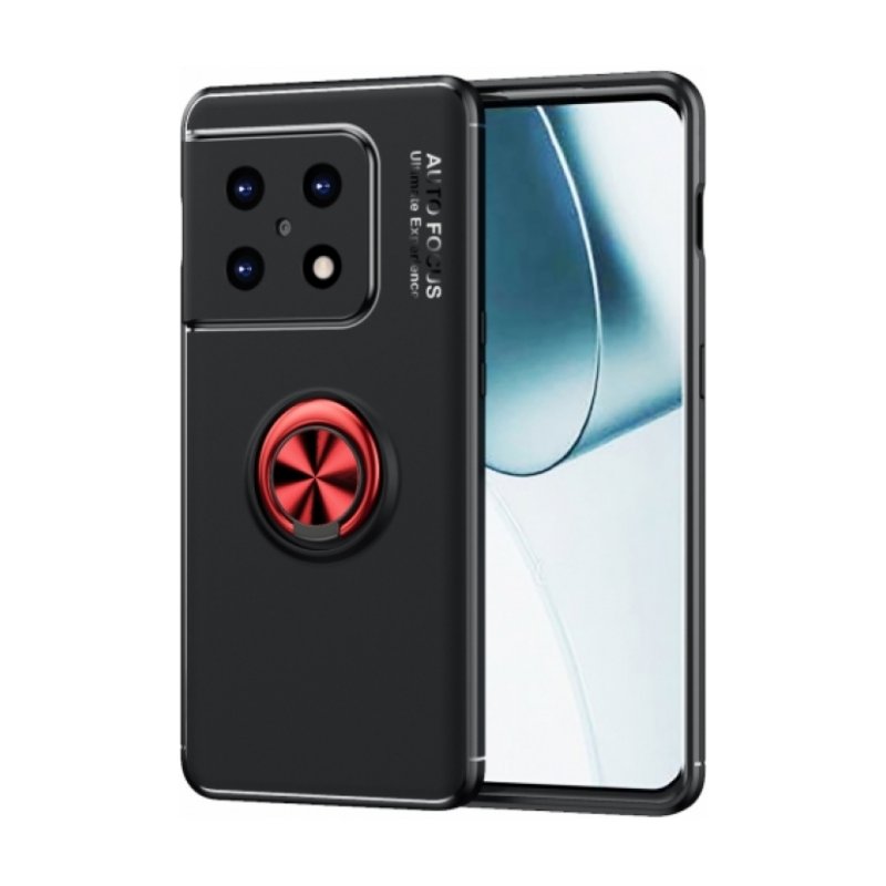 OnePlus 10 Pro Kılıf Renkli Silikon Yüzüklü Standlı Auto Focus Ravel Kapak - Kırmızı - Siyah