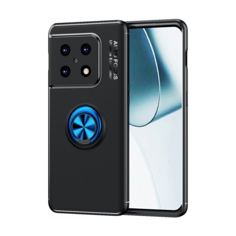 OnePlus 10 Pro Kılıf Renkli Silikon Yüzüklü Standlı Auto Focus Ravel Kapak - Mavi - Siyah