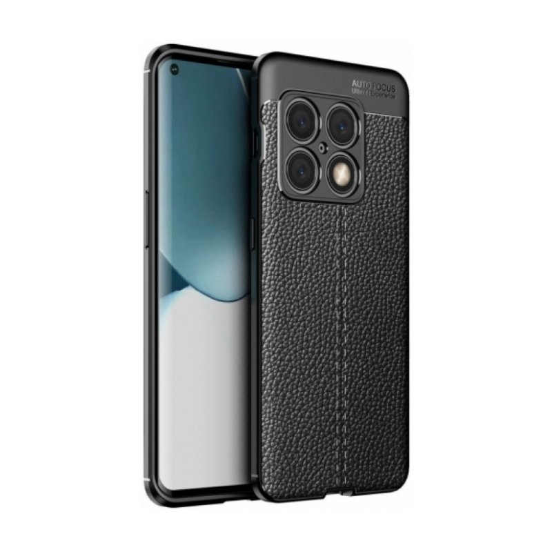 OnePlus 10 Pro Kılıf Deri Görünümlü Lüks Parmak İzi Bırakmaz Niss Silikon Kapak - Siyah